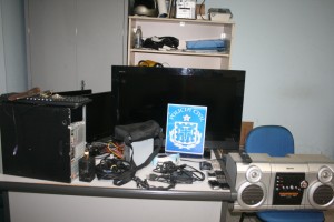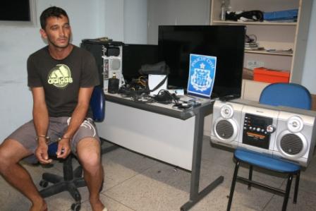 A equipe da 8ª Coordenadoria de Polícia do Interior (Coorpin) apresentou a imprensa na tarde desta sexta-feira, (28/11), o jovem Cleiton Martins da Silva, 23 anos de idade, morador da Rua Kuwait, no Bairro Ulisses Guimarães. Cleilton Martins, é acusado de participar do assalto a fazenda Verona, localizada nas proximidades do Distrito de Cachoeira do Mato,juntamente com Nilson Meira da Silva, 32 anos de idade; Valdeir de Souza Rocha, 38 anos e Anderson Rocha Fernandes, 21 anos.Ambos foram presos em uma operação da CETO, no dia 26 de novembro de 2013. A equipe do SILC, (Serviço Inteligência Local do Crime), coordenado pelo delegado, Dr.Marco Antonio Neves, prosseguiram as investigações minuciosas até encontrarem e prenderem, Cleilton Martins.Na casa de Cleilton Martins, foi encontrado uma Tv de LCD, em que o acusado nega que a televisão seja fruto de roubo, afirmando para nossa equipe de reportagem dizendo ”Que guardou a televisão por que um dos presos solicitou”, finalizou.A equipe do Silc, continuou as investigações nas casas dos demais presos, chegando a recolher diversos aparelhos de celulares, maquinas de computadores, facas, correntes,prancha de cabelos e um aparelho de som.Todos os produtos encontra-se na 8ª COORPIN, para reconhecimentos e devoluções dos verdadeiros donos.