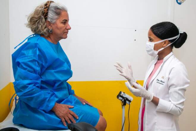 Vaneide de Souza mora no Córrego do Mutum e destacou a importância da iniciativa: “quando preciso de exames eu tenho que ir para Duque de Caxias e muitas vezes é difícil o transporte para lá. Fui diagnosticada com nódulos na garganta, por isso fico atenta com minha saúde e me agarro a oportunidades como essa”.