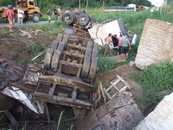 26 de abril de 2012Carreta carregada de granito tomba na “curva da morte” na BR-101