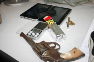 Com o menor foi aprendido, tablete de “maconha”, pesando aproximadamente 0,100g (cem gramas); 02 tabletes; 02 celulares e um revólver calibre 38, com 04 munições.