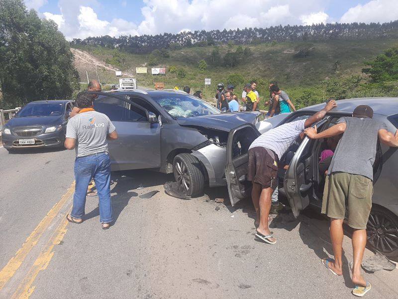 Eunápolis – No final da manhã desta sexta-feira (18/06), dois automóveis colidiram de frente na ponte de Mundo Novo na BR-101.