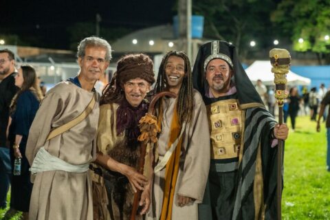 “É uma experiência maravilhosa para mim estar aqui, depois de tanto ensaio e tanto esforço que a gente fez. Todo mundo unido em prol desse espetáculo lindo, nessa estrutura montada. É lindo ver o apoio dado para nós, artistas.”, declara um dos atores da peça minutos antes de subir ao palco.
