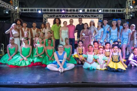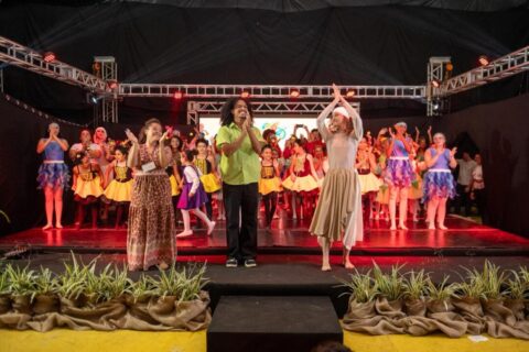 A programação teatral ocupou parte central da noite, com encenações de Zero Herói, O Mágico de Oz e Romeu e Julieta, que mantiveram o público atento durante as apresentações.