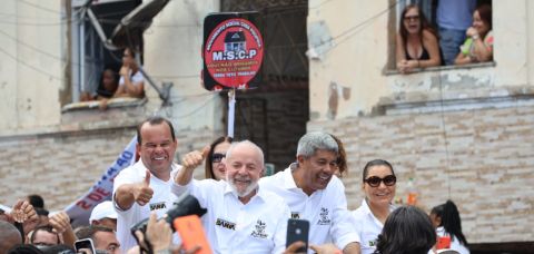 Acompanham o cortejo, junto com o presidente, o vice-governador Geraldo Júnior, a primeira-dama do Brasil, Janja Silva, e a primeira-dama da Bahia, Tatiana Velloso.