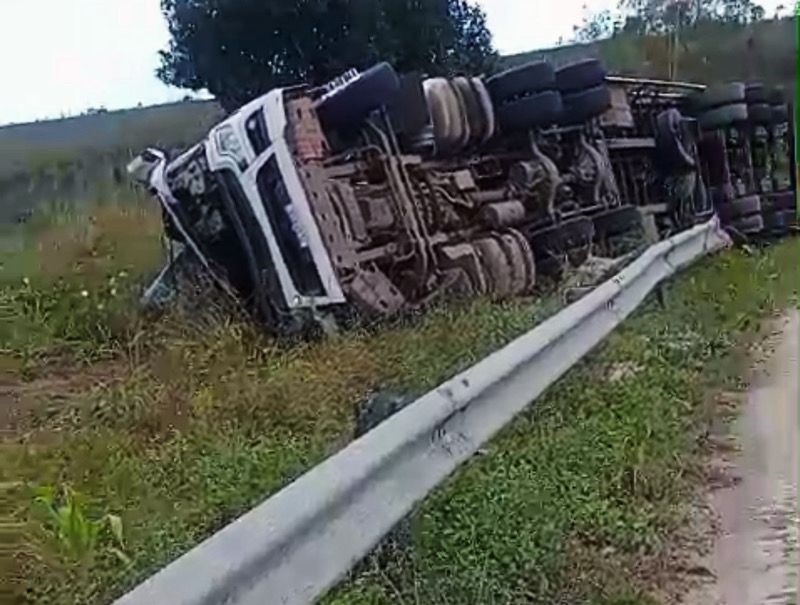 Motorista de Eunápolis morre após carreta tombar na BR 101 entre Itabela e Itamaraju