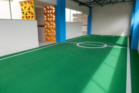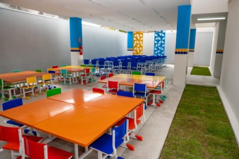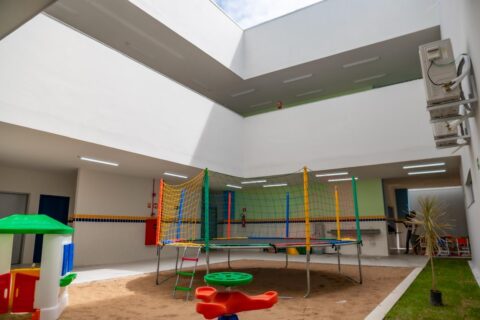 O espaço também dispõe de cozinha, despensa, refeitório e banheiros adaptados, assegurando mais conforto e acessibilidade para alunos e profissionais. Para o desenvolvimento das atividades e momentos de convivência, a unidade possui ainda áreas destinadas ao lazer, como parquinho e miniquadra.