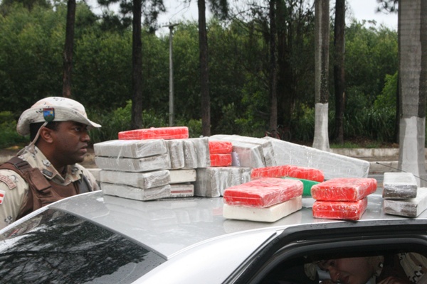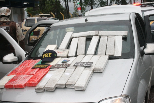 Com o casal, foi apreendida uma quantidade acima de 20 kg de maconha e 15 kg de pasta base de cocaína. A droga estava escondida em um compartimento que só abria com dispositivo eletrônico dentro do veículo, modelo Renault Logan, placa Policial-OKQ-6547, Campinas-SP.