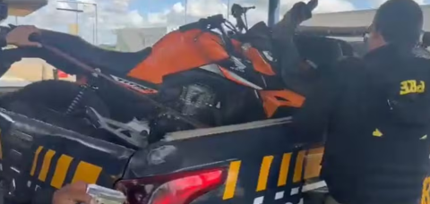 Ao verificar o bagageiro do veículo, os agentes encontraram a motocicleta. O veículo possuía uma queixa-crime no estado de São Paulo, e estava sendo utilizada com uma placa de outro veículo licenciada do município de Alagoinhas.