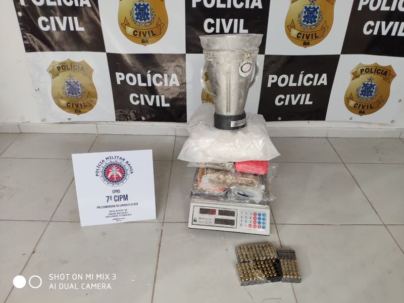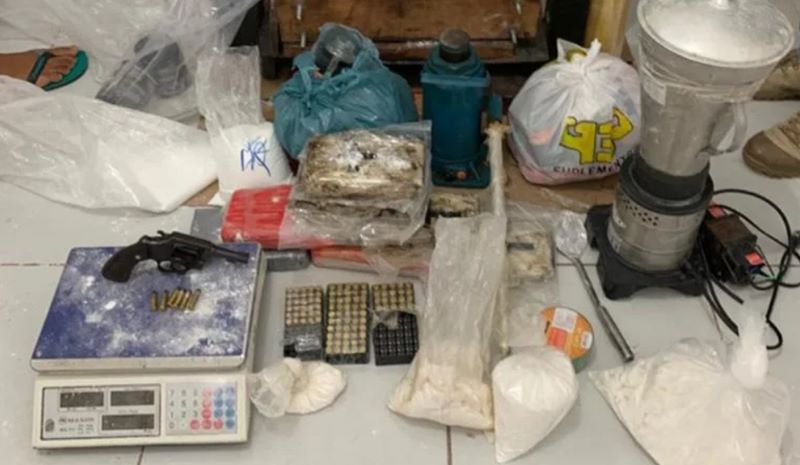 Além da droga, foram apreendidos no local uma 01 revólver, 126 cartuchos de diferentes calibres e uma prensa hidráulica.