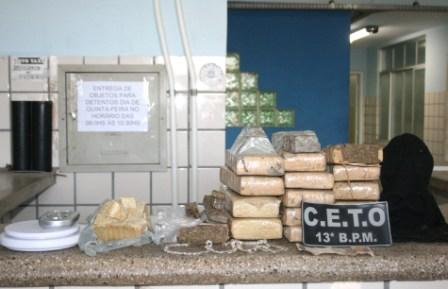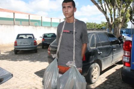 Teixeira de Freitas: Policiais da CETO, sob o comando do Tenente Farias, do 13º Batalhão, comandado pelo Tenente Coronel, Paulo Silveira, prenderam na manhã deste domingo, (11/08), no Bairro São Lourenço, divisa com o bairro Arcoverde, Gilmar Gomes de Aguilar, vulgo “perna”, morador da Rua da Bandeira, em Teixeira de Freitas. Com o elemento, foram aprendidos: 02(duas) balanças de precisão, 01 (um) celular, 01 (uma ) tôca ninja, 01 (um) pulseira de prata, 01(uma) corrente de prata, 13,350Kg ( treze quilos e trezentos e cinqüenta gramas de maconha), 0,700g (setecentos gramas de crack) e R$ 50,00 (Cinquenta reais) em espécie.