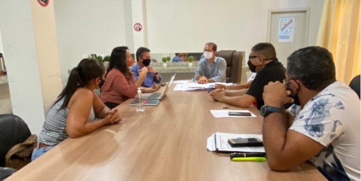 11 de março de 2021Na manhã desta quinta-feira (11) representantes da associação de comerciantes que atuam na área de alimentação da Praça da Bíblia estiveram no Gabinete e participaram de uma reunião com o prefeito dr. Marcelo Belitardo, o vice Yuri Fernandes, a secretária de Projetos Estratégicos Ana Lucia Apenburg e a diretora de Desenvolvimento Econômico Maxsoely Brito.