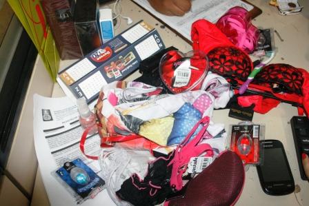 Loja Atually – 01 (um) conjunto de calcinha, sutien vermelho e preto, 07 (sete)calcinhas, 01 (um) baralho Kama-suthra,04 (quatro) itens afrodisíacos.
