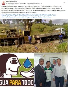 Essa perseguição a mim e ao povo se estendeu as obras do Água Para Todos em São José de Vereda (Piau), Massaranduba e Centenário e Sulzinho, pois, sempre a qualquer custo tentavam boicotar e sabotar as obras pensando está prejudicando Manrick, mas, o verdadeiro prejudicado era o povo veredense impossibilitado de ter água de qualidade em sua torneira.